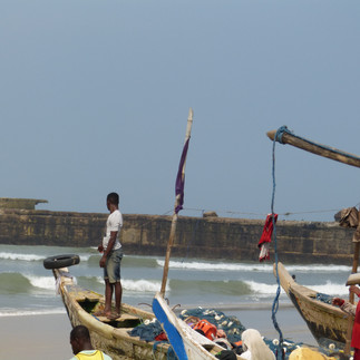 “In the 80s, former president Jerry Rawlings of Ghana revolutionized the world's perception of Ghana's image and relevancy by entering the tourism industry. He converted Ghana's fifty castles and forts that dot the Ghanaian coastal landscape into heritage sites. Upon arrival at Elmina, a fishing and salt production village, we passed the small fishing village with countless boats and canoes adorned with beautiful festive colors and flags. The locals were friendly, and some were selling small native crafts in front of the castle.